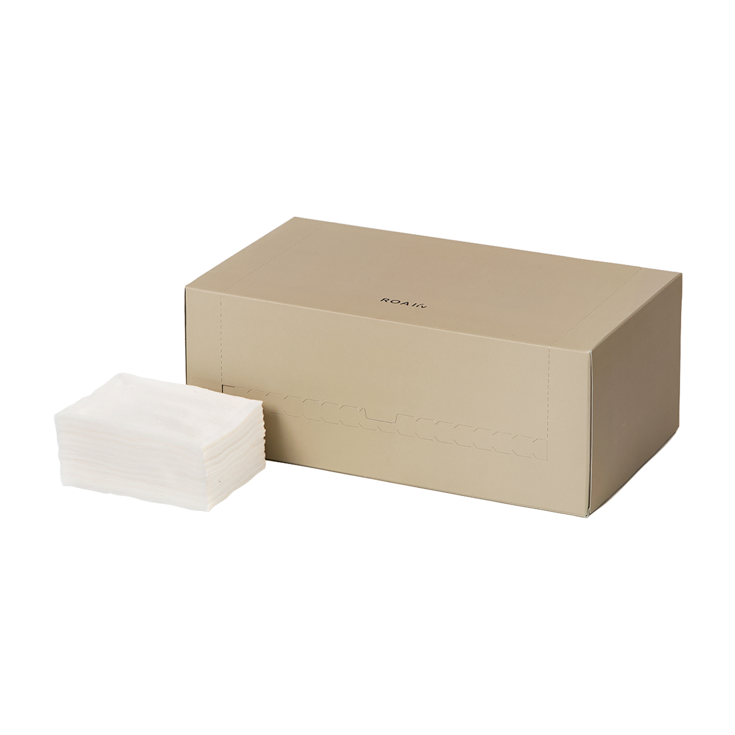 肌に触れる外側の綿は、高圧水流で2つの繊維を絡み合わせて毛羽立ちを抑え、古い角質も絡めとるように肌にやさしく密着します。中綿には、吸収性にすぐれた太さのある綿と、細く長い綿をミックスし挟み込みました。