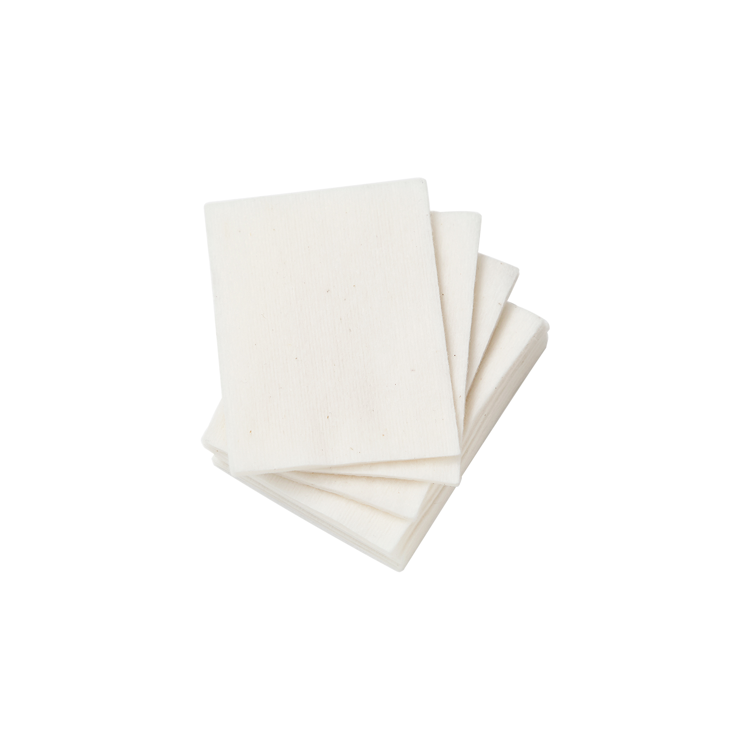 肌に触れる外側の綿は、高圧水流で2つの繊維を絡み合わせて毛羽立ちを抑え、古い角質も絡めとるように肌にやさしく密着します。中綿には、吸収性にすぐれた太さのある綿と、細く長い綿をミックスし挟み込みました。「GE コンストラクトリファイナー」だけでなく、様々にご活用いただけます。