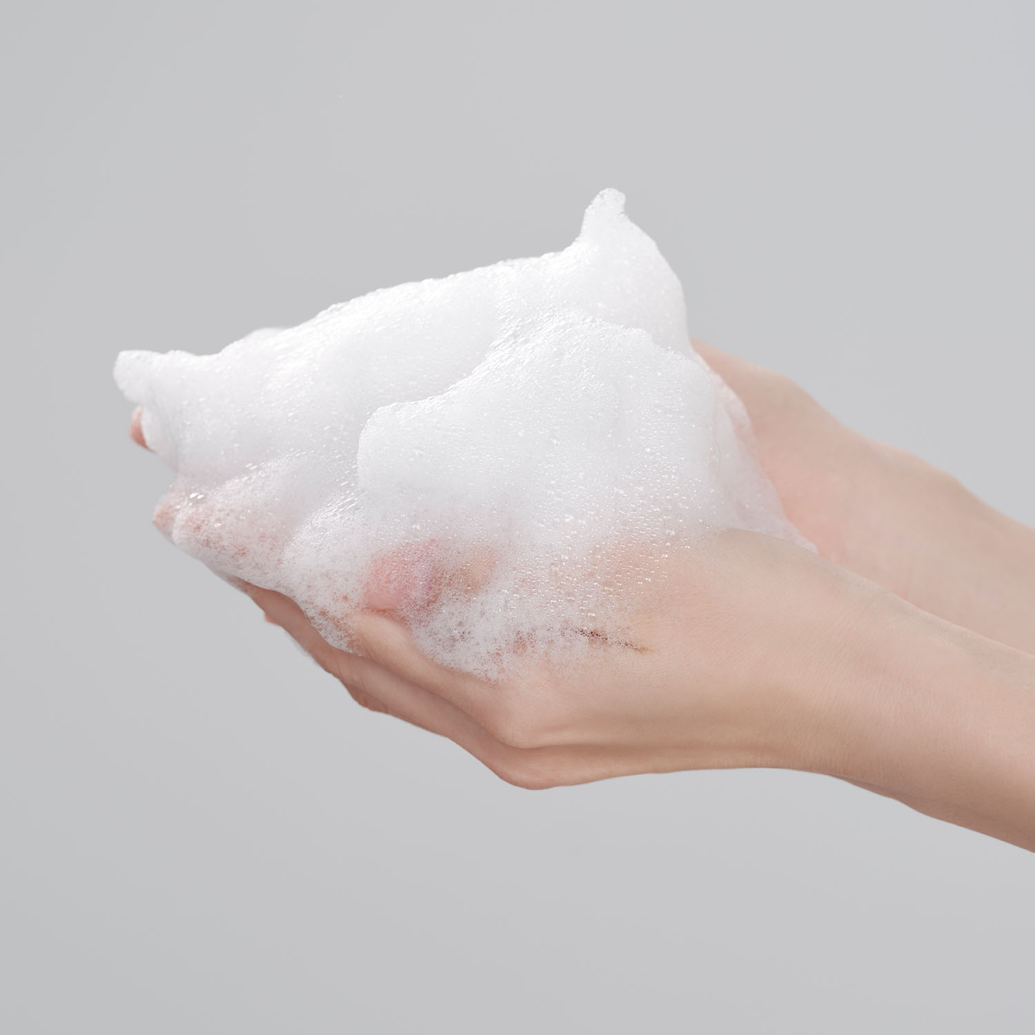 ポンプ1プッシュ分を手にとり、水を少量加えてよく泡立て、顔全体を包み込むようにやさしく洗います。 その後、水またはぬるま湯で十分に洗い流してください。