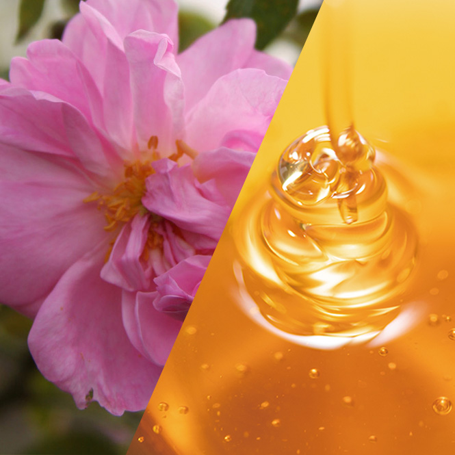 ダマスクローズのハチミツを酢酸菌で発酵させた成分。肌の古い角質を優しく取り除き、肌に潤いを与えます。