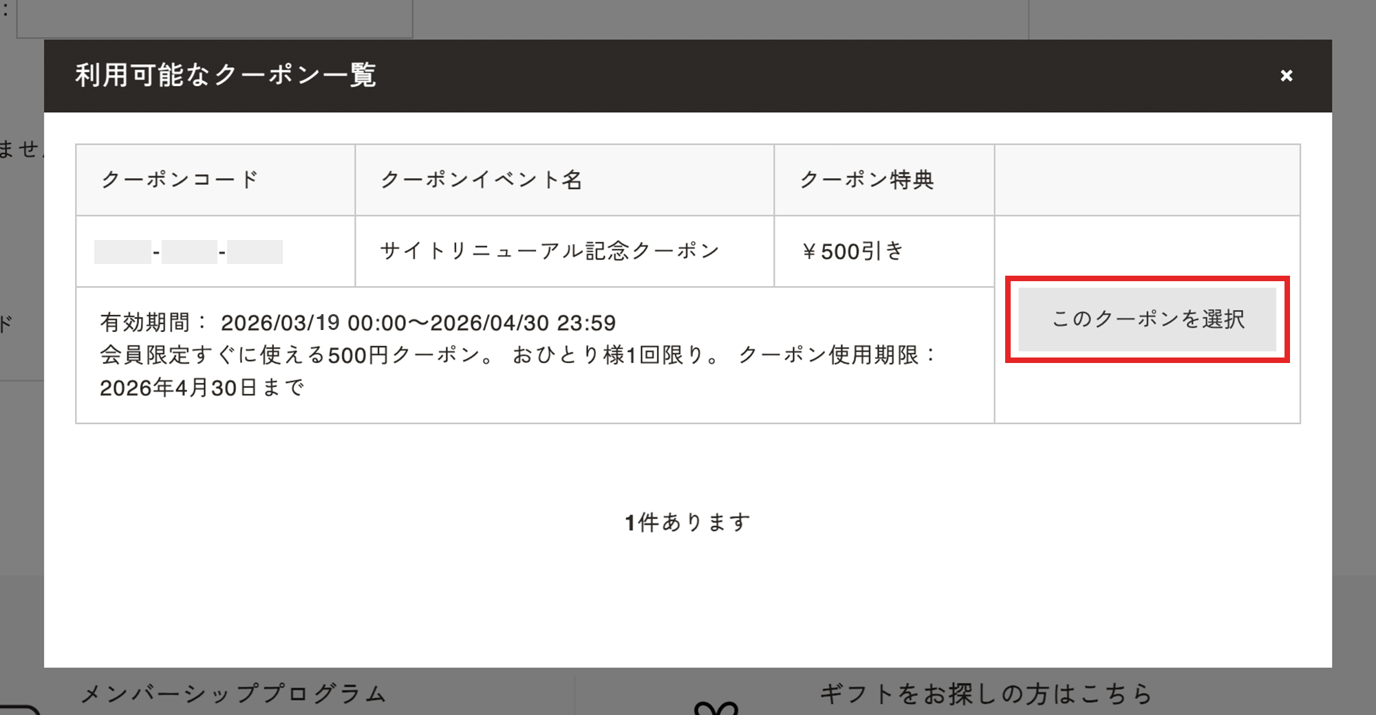 ③利用可能なクーポン一覧からご利用するクーポンを選択します。