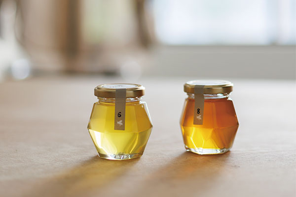 六角形の瓶に入った小さなサイズで贈り物にもぴったり。基本は非加熱はちみつですが、季節によっては巣箱と同じ温度まで温めることもあります。はちみつは糖によって結晶化するものなので、その風合いもまた自然のものとして楽しみたいですね。