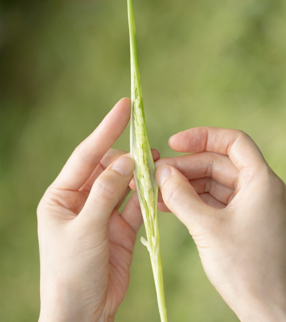 小島さんに教えていただいたのですが、稲の花は何と2時間ほどしか開花せず、花の短い命を終えるのだそうです。小さく可愛らしく、どこか儚げな印象にもうなずけます。