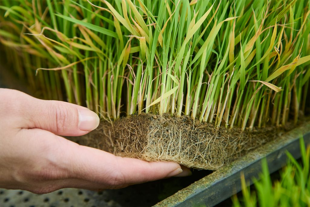 小島さんの田んぼはオーガニックなので、当然、化学肥料を一切使用せずにお米を育てます。聞けば簡単そうですが、そのご苦労は計り知れません。除草剤を使わないので、雑草がどんどん成長し、お米の生育に影響を与えてしまうため、草刈りが欠かせないそうです。その田んぼに植える稲も創意工夫のこだわりが詰まっていることに驚きました。
